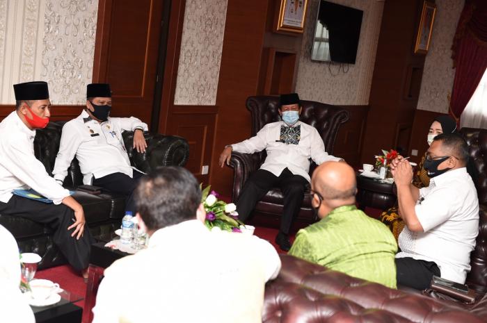 KEPRI, PROVINSI, - Plt. Gubernur, H. Isdianto menerima Audensi Ketua KPU Provinsi Kepri Sriwati beserta rombongan bertempat di ruang kerja kantor Gubernur, Gedung A, lt.4 Dompak, Tanjungpinang, Jumat (10/7).