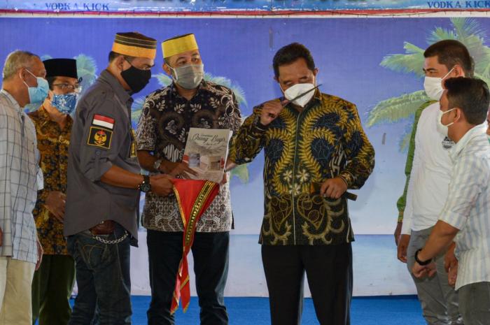 Pada kesempatan tersebut juga diserahkan plakat dan juga badik dari KKSS kepada Bahtiar. Sementara Pjs. Bahtiar menyerahkan buku berisi sejarah perantuan masyarakat Bugis tempo dulu di bumi Melayu. (HMS/TIO).