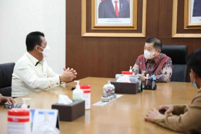 KEPRI, PROIVINSI, - Setelah melantik Wan Siswandi dan Rodial Huda sebagai Bupati dan Wakil Bupati Kabupaten Natuna terpilih masa jabatan 2021-2024 di Gedung Daerah Tanjungpinang, Senin pagi 24 Mei 2021, Gubernur Kepri H. Ansar Ahmad SE MM langsung terbang ke Jakarta untuk bertemu Menteri Bappenas Soeharso Monoarfa.