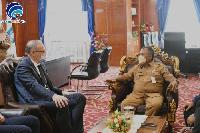 KEPRI - Penjabat (Pj) Sekretaris Daerah Provinsi Kepulauan Riau, Drs. Eko Sumbaryadi menyambut langsung kedatangan Duta Besar Denmark untuk Indonesia, H.E. Lars Bo Larsen yang didampingi oleh Head Of Maritime and Defence Denmark, Mathias Emil Bengtsso.