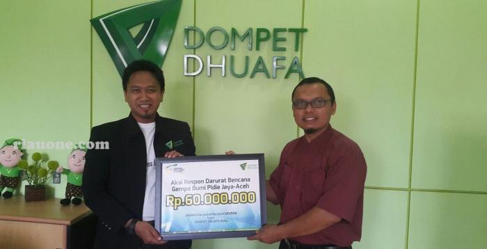 Pemberian ini merupakan wujud kepedulian bagi saudara-saudara yang terkena musibah. Karena merekatelah kehilangan rumah dan harta bendanya, hingga ratusan korban jiwa. Support donasi ini diberikan dikantor Dompet Dhuafa Riau yang berada di jalan Tuanku Tambusai, kota Pekanbaru. Budi Suhari, GM Laznas Karyawan Muslim Chevron Indonesia, mengatakan dalam diskusi bersama timDompet Dhuafa Riau bahwa Laznas Chevron ingin terlibat maksimal dalam meringankan korban yangterdampak musibah gempa di Aceh.