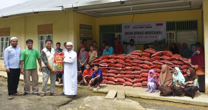 Beras tersebut merupakan penyaluran Program Infak Beras untuk Madrasah Mentawai yang dilaksanakan Lembaga Amil Zakat Infak & Sedekah Mitra Ummat Madani Padang, Jumat (16/11). Selain beras, juga diserahkan bantuan lauk pauk senilai Rp 16.5 juta. Semau merupakan hasil penggalangan cepat infak dari para dermawan baik di ranah dan dirantau yang tergugah hatinya mendapatkan kabar tentang anak ? anak di Madrasah Mentawai yang kehabisan bahan makanan.
