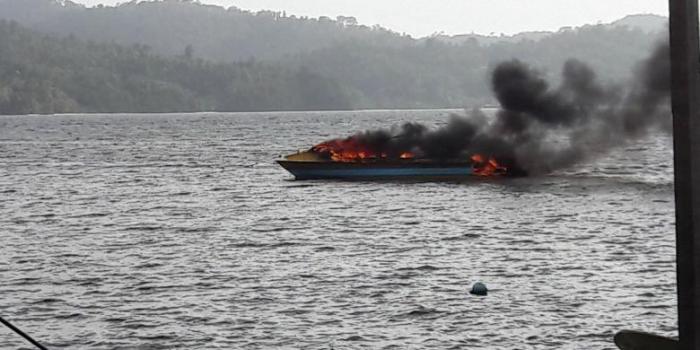 Kapal Cepat Boat Pancung Berpenumpang 21 Orang Meledak di Perairan Indragiri