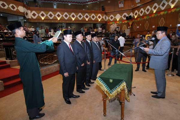 riauonecom, Pekanbaru, - Dewan Perwakilan Rakyat Propinsi Riau menggelar rapat Paripurna Istimewa dalam rangka pengucapan Sumpah/ Janji Pimpinan DPRD Riau Masa Jabatan 2014-