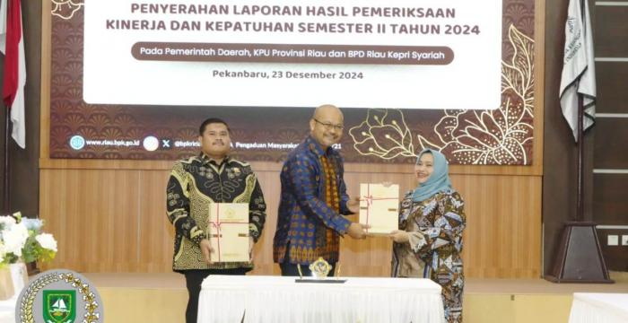 Penyerahan hasil pemeriksaan ini dimulai dengan penandatanganan berita acara serah terima dan penyerahan LHP antara kepala BPK RI Perwakilan Riau Arif Agus bersama Bupati Bengkalis Kasmarni dan Ketua DPRD Septian Nugraha.