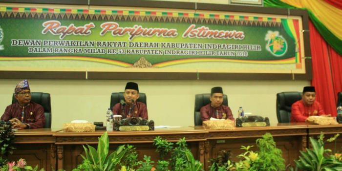RIAUONE.COM, TEMBILAHAN - Diawali dengan pembacaan ayat suci Al-Qur’an, Rapat Paripurna Istimewa dalam rangka Milad ke - 53 Kabupaten Inhil di gedung DPRD Inhil, Tembilahan, Kamis (21/6/2018) dibuka langsung oleh Ketua DPRD Inhil, H Dani M Nursalam.