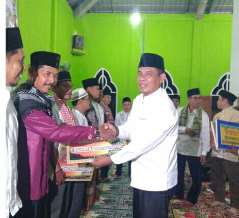 FOTO : Bupati Kuansing Menyerahkan bantuan saat safari ramadan di mesjid Ansharullah Pulau Kijang Baserah