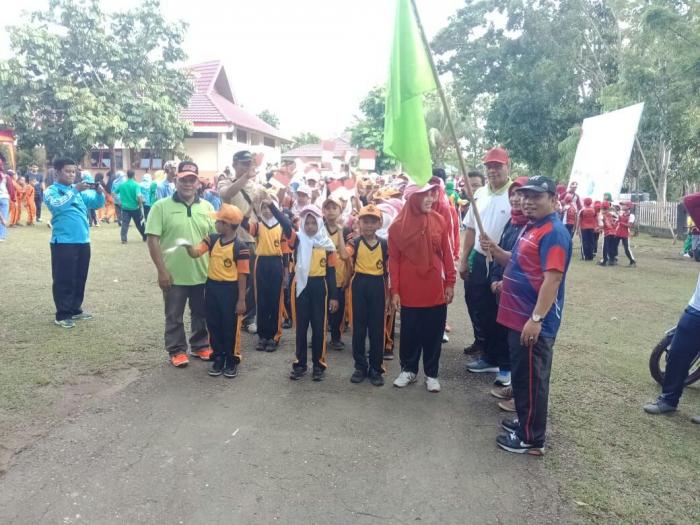 KUANSING,- Wakil Ketua I DPRD Kuansing Sardiyono melepas secara langsung ratusan peserta acara Gerak Jalan Santai, Rabu pagi ( 8/8/2018 ) di lapangan Kantor Camat Gunung Toar.