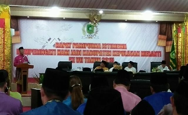 RIAUONE.COM, MERANTI, ROC, - Sabtu 19 Desember 2015 Kabupaten Kepulauan Meranti memperingati Hari Jadi ke-7. Salah satu agenda penting memperingati Hari Jadi itu dengan digelarnya Rapat Paripurna Istimewa DPRD yang dibuka langsung oleh Ketua DPRD, H Fauzi Hasan.
