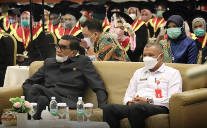 RIAU, PARLEMEN, - Ketua Komisi IV DPRD Provinsi Riau, Parisman Ihwan mewakili Pimpinan DPRD Riau menghadiri Wisuda Sarjana dan Diploma Universitas Pahlawan Tuanku Tambusai Kampar. Rabu (23/12/2020).