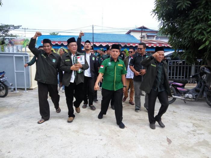 RIAUONE.COM, TEMBILAHAN - Partai Kebangkitan Bangsa (PKB) Kabupaten Indragiri Hilir (Inhil) menyerahkan dokumen pendaftaran partai politik (Parpol) calon peserta Pemilihan Umum (Pemilu) tahun 2019 ke kantor Komisi Pemilihan Umum (KPU) di Tembilahan, Senin, (16/10/2017).
