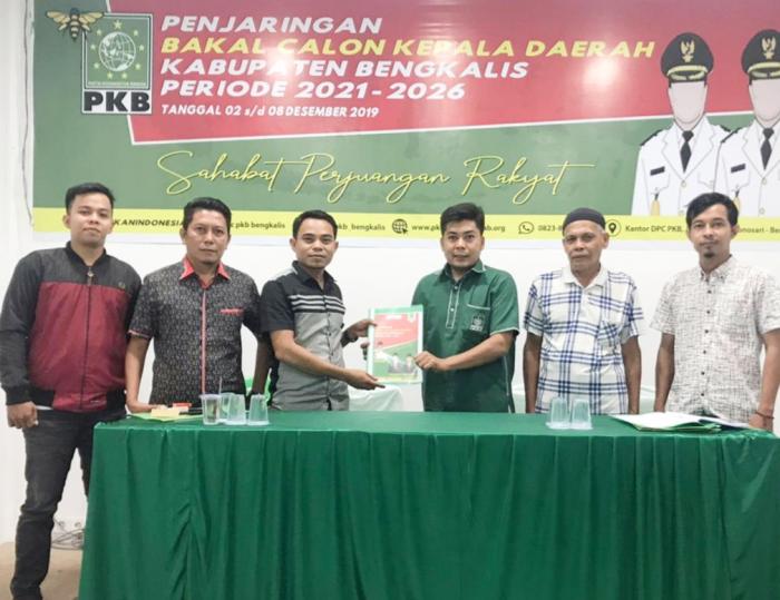 BENGKALIS, - Calon Bupati Bengkalis Arifin, SH.MH menyerahkan berkas pendaftaran pencalonan dirinya ke Kantor Dewan Pimpinan Cabang(DPC)Partai Kebangkitan Bangsa(PKB), Kabupaten Bengkalis yang beralamat di jalan baru desa wonosari Kecamatan Bengkalis, Kabupaten Bengkaliis, Provinsi Riau.