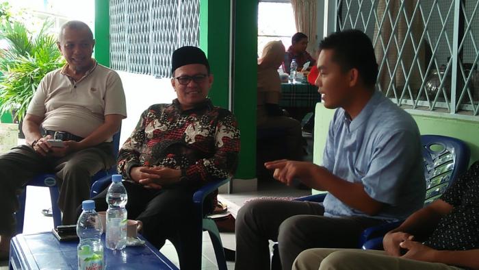 DURI-Sabtu (1/2/2020) sekira jam 10.21 WIB, bakal Calbup Kabupaten Bengkalis, Khairul Umam dan MC Kendro, bertemu dalam satu momen silaturahmi Canteen Masjid Nur Iman, Kelurahan Balik Alam Mandau, Kabupaten Bengkalis, Provinsi Riau.