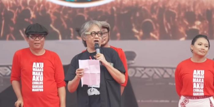 Butet dilaporkan ke polisi oleh Projo DIY atas dugaan penghinaan terhadap Jokowi saat tampil dalam acara kampanye capres Ganjar Pranowo di Alun-alun Wates, Kulon Progo.