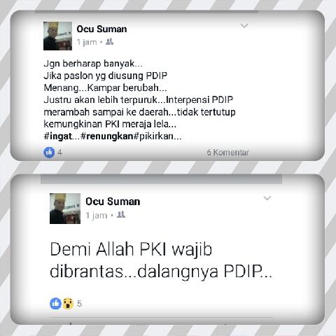 Sebut PDI-P – “ PKI” Akun Facebook Ocu Suman Terancam di Laporkan Kepolisi.
