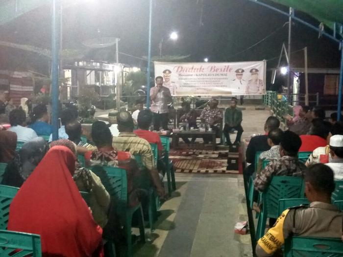 DUMAI - Dalam rangka membangun kesadaran dan partisipasi masyarakat terhadap Harkamtibmas, Kepolisian Resort (Polres) Dumai menggelar Program Duduk Besile.