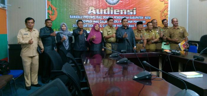 SELATPANJANG, RIAUONE.COM - Dalam rangka mendukung kegiatan Badan Pengawas Pemilu (Bawaslu) Provinsi Riau untuk mensukseskan pelaksanaan Pilgubri, Pileg dan Pilpres mendatang, Bawaslu Riau yang dipimpin langsung Ketua Bawaslu Edi Syafruddin melakukan audiensi dengan Pemkab Kepulauan Meranti, bertempat diruang rapat Melati Kantor Bupati, Senin (22/5/2017).