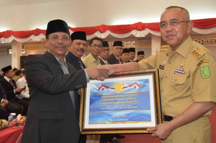 Penghargaan diberikan oleh Gubernur Riau Arsyadjuliandi Rahman kepada Bupati Bengkalis yang diwakili Pelaksana Tugas Sekretaris Daerah Arianto, pada penyerahan DIPA dilaksanakan di Balai Pauh Janggi Gedung Daerah, Pekanbaru, Senin 18 Desember 2017.