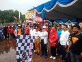 DUMAI - Ribuan peserta memadati arena Jalan Sehat bertema Kick Out Hoax di Lapangan Eks Kantor Walikota Dumai, Minggu (7/5). Para peserta antusias mengikuti rangkaian