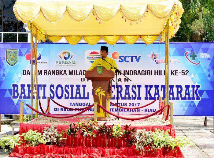 TEMBILAHAN - Bupati Indragiri Hilir (Inhil) HM Wadan membuka secara resmi Bhakti Sosial Operasi Katarak di halaman RSUD Puri Husada Tembilahan, Sabtu (5/8/2017).