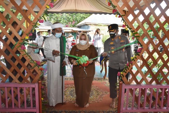 BENGKALIS - Bupati Bengkalis, Kasmarni, meresmikan Pondok Pesantren Sholawat Al Burdah Baa Khaalish 2002, Jalan Bantan, Gg. Melati, Desa Senggoro, Kecamatan Bengkalis, Selasa, 10 Agustus 2021.