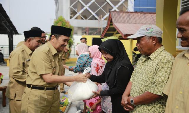 SIAK, - Bupati Siak, Syamsuar melaksanakan safari Ramadan dengan asyarakat Kelurahan Mempura Kecamatan Mempura di masjid Nur Huda, Senin (29/5) malan.
