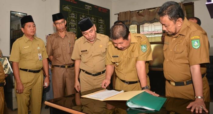 Didampingi Pelaksana Tugas (Plt) Asisten Administrasi Umum H Hermanto Baran,Plt Kepala Badan Kepegawaian Daeah (BKD) Yuhelmi, Plt Inspektur Suparjo dan Kepala Bagian Humas Johansyah Syafri, Amril melalukan sidak ke 14 SKPD di lingkungan Pemkab Bengkalis.