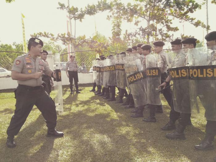 Pelalawan, riauone.com - Polres Pelalawan menggelar latihan rutin pengendalian masa (Dalmas) dalam rangka menghadapi Pemilihan Kepala Daerah (Pilkada) serentak tahun 2018 ini, Senin pagi ( 22/1/2018) di Lapangan Mapolres Pelalawan.