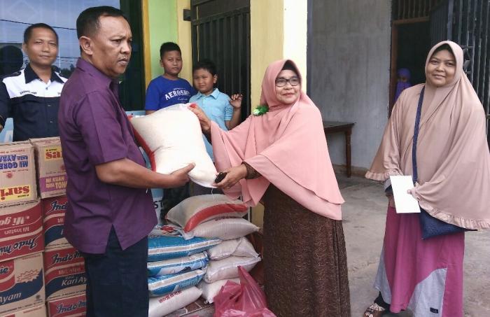 RIAUONE.COM, TEMBILAHAN - Ketua Koordinator Kegiatan Kesejahteraan Sosial (K3S) Kabupaten Inhil Hj.Zulaikhah wardan menyerahkan santunan berupa bingkisan dan paket kepada p