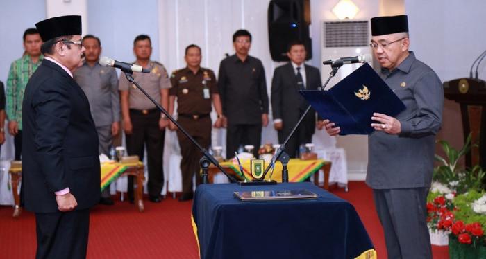 PEKANBARU - Gubernur Riau Arsyadjuliandi Rachman lantik dan kukuhkan 43 pejabat eselon II untuk menduduki Organisasi Perangkat Daerah (OPD) baru.