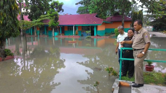 Kadisdik Tinjau Kondisi Banjir SMP Negeri 1 Pangkalan Kerinci