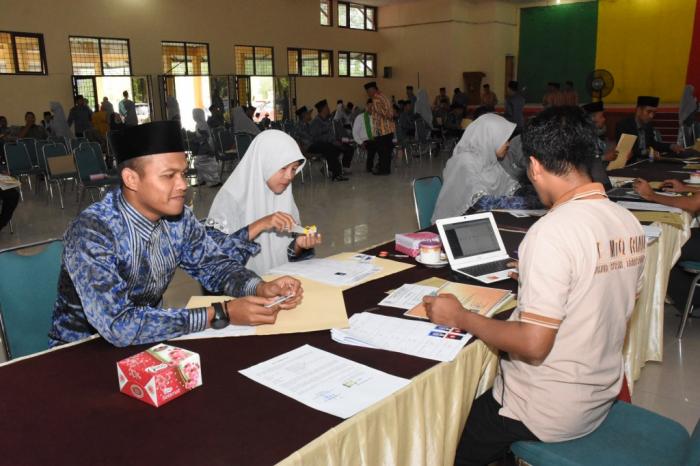 DUMAI – Sebanyak 45 calon peserta Kafilah Bengkalis, selesai melakukan pendaftaran ulang yang sebelumnya telah didaftarkan via online, untuk mengikuti Musabaqah Tilawatil Qur’an (MTQ) ke-36 tingkat Provinsi Riau tahun 2017, di Kota Dumai, Sabtu (9/12/2017) pagi.