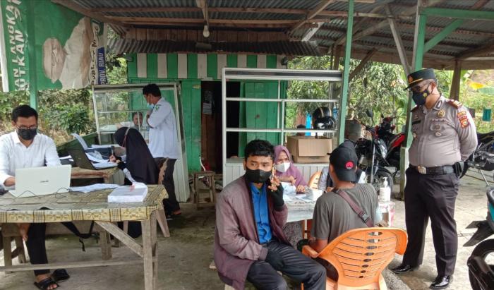 Kapolsek Kunto Darussalam AKP. Fandri SH Tinjau Langsung Gerai Vaksin Presisi Di Simpang Kulim