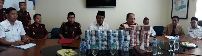 Uang itu diserahkan Kajari Bima Suprayoga,SH,M.Hum kepada Plt.Bupati Rohil Drs.H.Jamiluddin secara simbolis.Penyerahan berlangsung di kantor BRI Cabang Bagansiapiapi, Jalan Merdeka, Rabu (22/02/18).