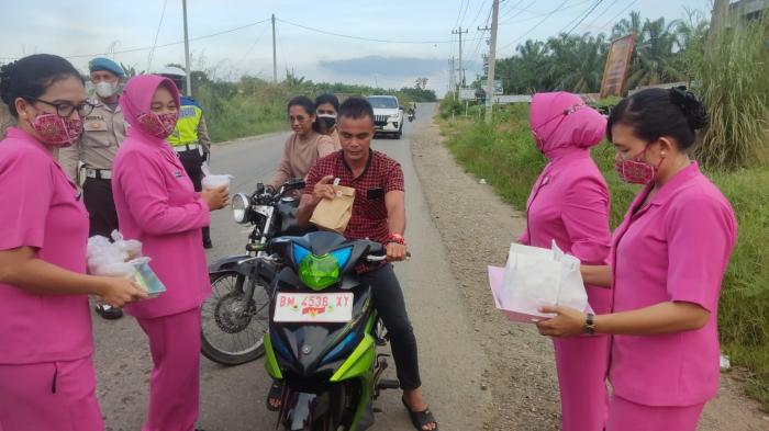 Rokan Hulu, RiauOne.Com - Ibu Ibu Bhayangkari ranting Polsek Tandun Cabang Polres Rokan Hulu melaksanakan kegiatan bakti sosial dengan tajuk "Bhayangkari Peduli" berupa pembagian takjil serta bingkisan kepada masyarakat di sekitaran wilayah kerja Polsek Tandun, Selasa (26/4/2022) sekira pukul 5.30 WIB.