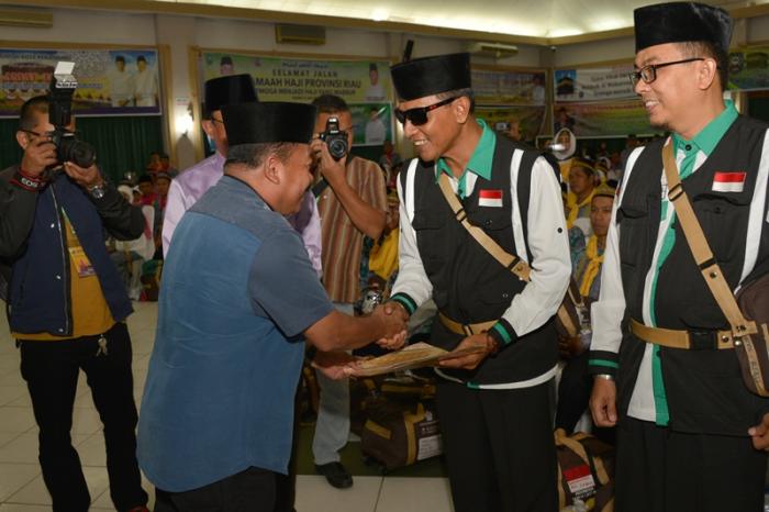 Pelepasan JCH Kloter 8 BTH yang berjumlah 207 dari Bengkalis, 236 dari Indragiri Hilir (Inhil) dan 5 petugas haji itu dilakukan secara resmi Bupati Inhil HM Wardan.