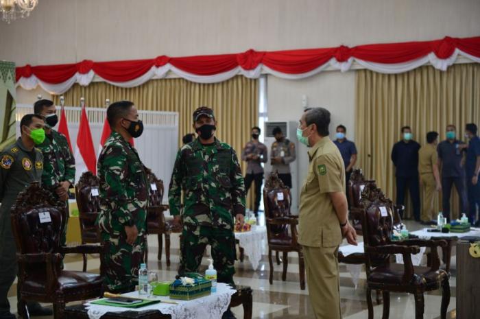 RIAU, PEKANBARU - Gubernur Riau, H Syamsuar, Pangdam I/BB, Mayjen TNI Hassanudin, Kapolda Riau, Irjen Pol Agung Setya Imam Effendi, Danrem 031/WB, Brigjen TNI M Syech Ismed, Kalaksa BPBD Riau, Edwar Sanger, mengikuti Rakorsus Karhutla Tahun 2021 dengan Menko Polhukam RI di Provinsi Riau.