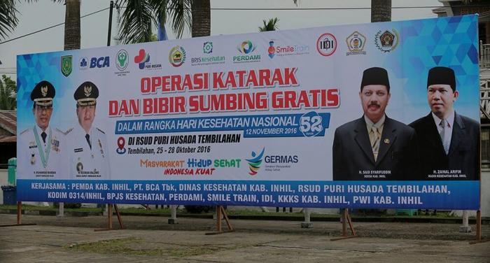 TEMBILAHAN - Bupati Indragiri Hilir (Inhil) HM Wadan membuka secara resmi Bhakti Sosial Operasi Katarak di halaman RSUD Puri Husada Tembilahan, Sabtu (5/8/2017).