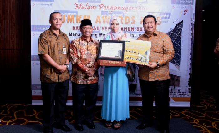 PEKANBARU - Bupati Bengkalis Amril Mukminin melalui Pelaksana Tugas Sekretaris Daerah (Plt Sekda) H Arianto mengucapkan tahniah kepada Devi Susanti, karena keluar sebagai terbaik I kategori usaha produksi/industri pada Usaha Mikro Kecil dan Menengah (UMKM) Award ke-8 Bank Riau Kepri, tahun 2016.