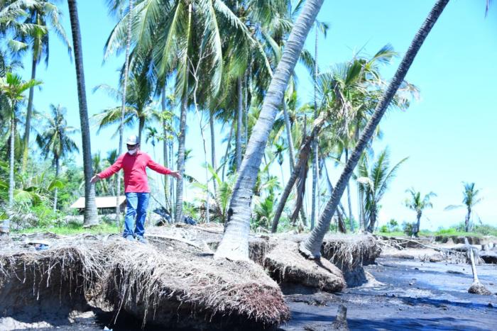 "Rata-rata yang habis karena ombak pantai ya hampir 1 kilo meter lebih. Kalau sudah seperti ini kami mohon diusahakan bagaimana solusinya, masyarakat sudah berusaha membendung secara manual namun habis," ujar salah seorang masyarakat Somingan, kala Wabup Bagus Santoso meninjau lokasi Pantai Teluk Papal Ahad, 25 April 2021.