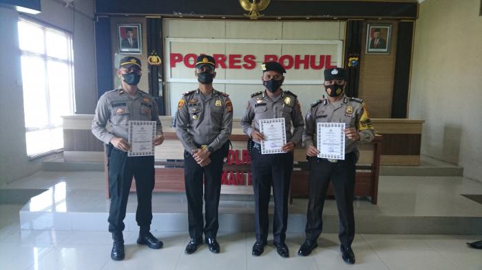 Kapolres Rokan Hulu, AKBP. Eko Wimpiyanto Hardjito SIK memberikan dan menyerahkan Piagam Penghargaan kepada Ipda Hendra Sitorus SH, Ipda Freddi Munte, Bripka M. Murni Harahap, atas keberhasilan telah mengungkap pelaku kasus kebakaran hutan di wilayah Hukum Polsek Tandun, Polres Rokan Hulu.