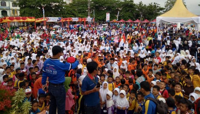 Jalan santai yang dihibur artis ibukota asal Inhil Andrigo dan finalis D,academy Indosiar Gitta Reysa ini memperebutkan hadiah utama satu unit sepeda motor dari Bapak Bupati yang diraih oleh M Maulana, murid Kelas VI SDN 020 Tembilahan. (san).