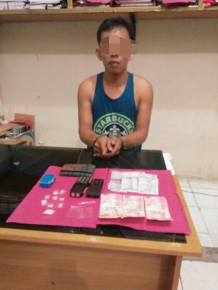 Bersama tersangka didapati sejumlah barang bukti antara lain ; 9 paket narkotika jenis shabu terbungkus plastik bening, 2 unit HP, sebuah kotak plastik warna hitam, sebuah sendok plastik, 2 buah plastik bening, sebuah dompet dan uang tunai sebesar Rp 300 ribu.