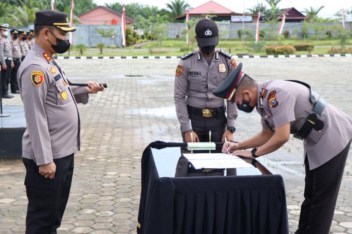Dalam kesempatan itu, Kapolres Rohul AKBP. Pangucap Priyo Soegito SIK,. MH menyampaikan, Sertijab merupakan hal biasa dilakukan dalam organisasi Polri, dalam rangka penyegaran, pengembangan karir dan peningkatan kinerja untuk mencapai tujuan organisasi.