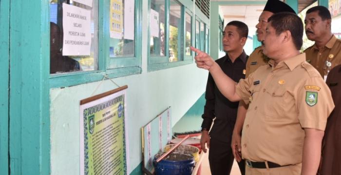 SIAK, RIAU, - Bupati Drs H Syamsuar pagi tadi meninjau pelaksanaan Ujian Nasional (UN) tingkat SMP hari pertama, Senin (9/5/2016) di SMPN 1 Mempura Benteng Hulu dan SMPN 2