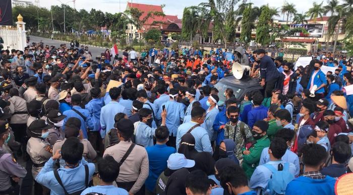 Unjuk Rasa Penolakan UU Cipta Kerja di Pekanbaru Riau, Ribuan Mahasiswa Turun ke Jalan