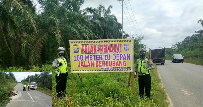 Aipda Rinto Simanjuntak SH mengatakan kepada RiauOne.Com "Kami memberi tanda tanda di titik jalan yang rusak dengan cat putih serta pemasangan spanduk himbauan untuk mengingatkan kepada para pengguna jalan agar berhati hati bahwa didepan ada jalan rusak, supaya tidak terjadi kecelakaan".