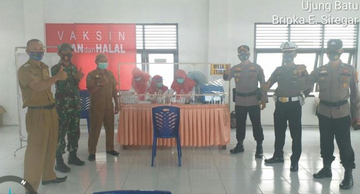 Dalam pelaksanaan vaksinasi Covid-19 sinovac perdana ini dihadiri Camat Ujungbatu Fisman Hendri S.Hut, Kapolsek Ujungbatu Kompol Amru Hutauruk SH, Panit Lantas Ipda Nanang Pujiono SH, Danramil 08/Tandun yang diwakili oleh Serma Andri M.