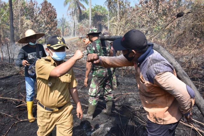 Begitu tiba di titik api, Wabup Bagus Santoso didampingi Tajul Mudaris, Camat Bantan Supandi, Kepala Desa Pambang Pesisir Pasla, Kepala Desa Pambang Baru Edi Zakri, menemui Kapolsek Bantan AKP Zulmar bersama petugas di lapangan sedang memadamkan api.