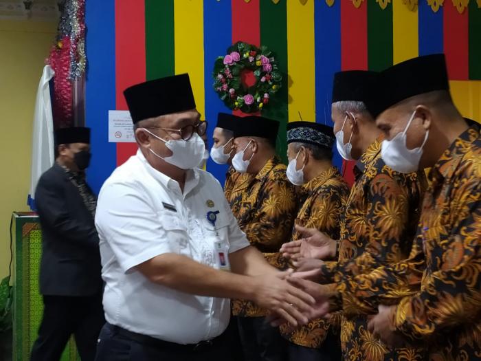 Dumai - Wali Kota Dumai dalam hal ini yang diwakili oleh Asisten III Bidang Administasi Umum Muhammad Syafie, S.Sos, M.Si menghadiri pengukuhan Perkumpulan Guru Swasta Madrasah Kota Dumai (PGSM KD) Masa Bakti 2021-2026, bertempat di Aula STIA Lancang Kuning, Rabu (16/03/22).